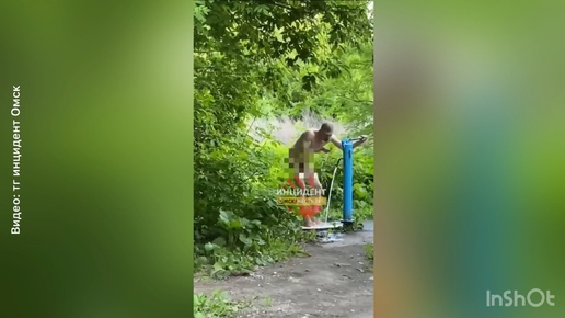 Солевое голое чудо решило устроить водные процедуры в одном из омских дворов! А если бы это увидели дети?!