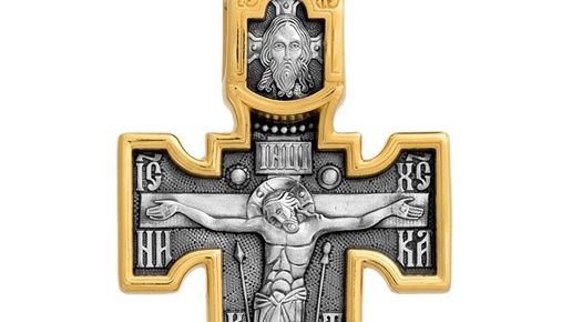 Крест «Распятие. Архангел Михаил. Казанская икона Божией Матери», серебро 925 проба с золочением (арт. 101.084)