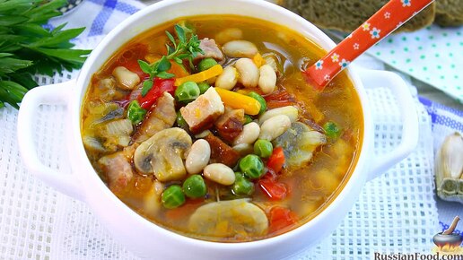 Быстрый, простой, насыщенный. Овощной суп с беконом и фасолью