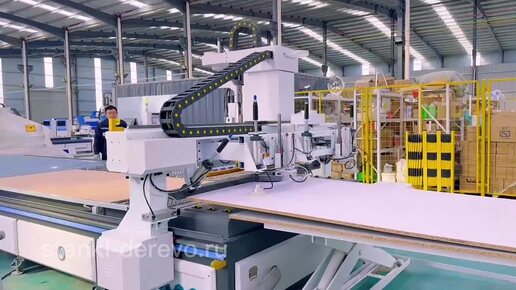 Линия нестинг ЛДСП, МДФ и фанеры состоит: фрезерный станок с ЧПУ, загрузочный и приемный столы. Автоматическая смена инструмента и вакуум