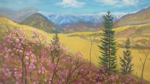 Как нарисовать весну в горах гуашью.