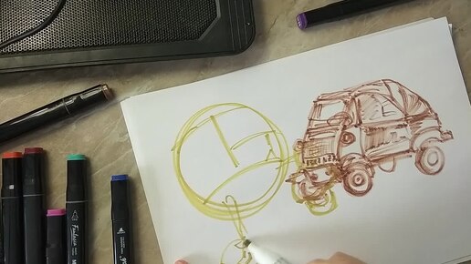 быстрые наброски скетчи подсохшими спиртовыми маркерами необычных транспортных средств