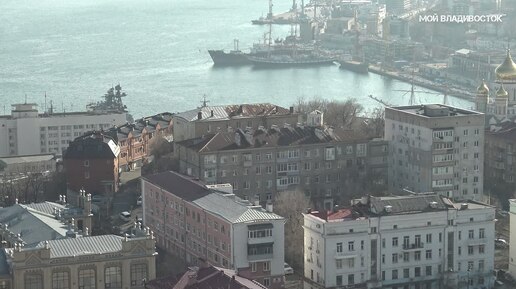 Владивосток с видовой парка Орлиное гнездо (8 апреля 2025).