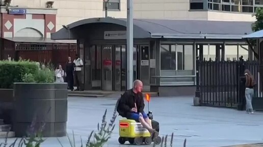 Когда робот оказался умнее человека. Мужчина на Белой площади у Белорусской в Москве оседлал робота-доставщика. Ненадолго, правда...
