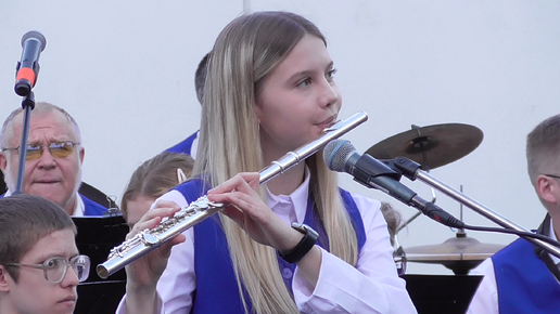 Девушка играет на флейте. Мелодия: Тёмная ночь