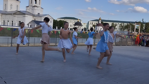 Девушки танцуют танец под песню. Фестивальная площадка