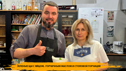 Зеленые щи из щавеля на мясном бульоне — с яйцом, горчичным маслом и столовой горчицей