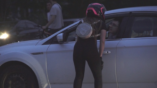 Мотоциклистка поспорила с водителем на улице Большой в Хабаровске