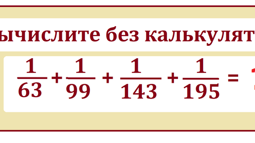 Вычислите сумму дробей без применения калькулятора: 1/63 + 1/99 + 1/143 + 1/195