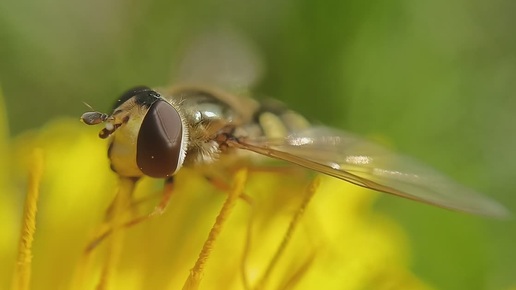 Муха журчалка на цветке одуванчика
