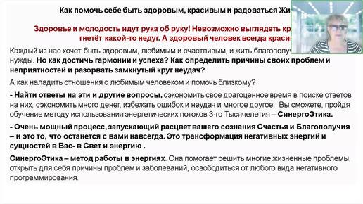 Галина Сейя. Метод СинергоЭтика. Здоровье Молодость Возможности. Часть 3 из 4