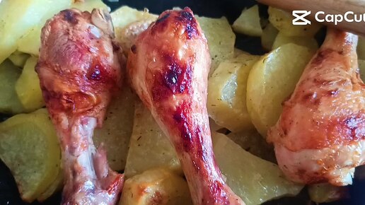 Вкусный обед: картошка с курицей до золотистой корочки и свежий летний салат! + Нежные панкейки к чаю!