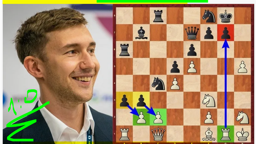 Сергей Карякин великолепен в шахматной науке - ставит мат белыми во французской защите Франциско Понсу в Сан-Пауло, 2012. В-т Винавера, 1-0
