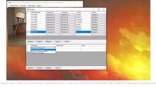 Информационная система для учета расходов на устранение затоплений технических помещений. Программа на Visual C# + БД MS SQL Server.