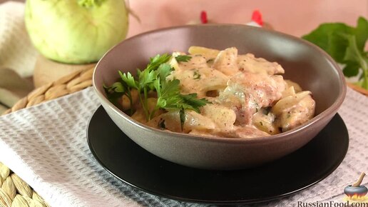 Отдохните от курицы с картошкой.) Курица, тушенная с кольраби