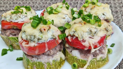 Кабачки с фаршем ,помидорами и сыром. Запечённые в духовке.