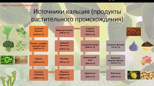 Кальций: Продукты питания растительного происхождения в которых его много