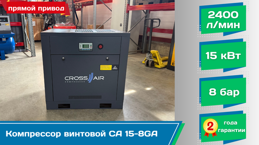 Компрессор винтовой CrossAir CA15-8GA: 2400 л/мин, 8 бар, 15 кВт, прямой привод. Краткий обзор от ООО "РД-Тех".