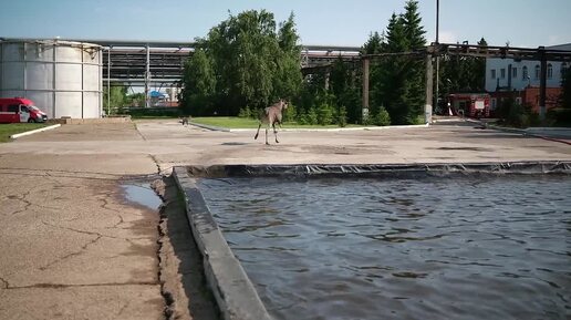 В Нижнекамске огнеборцы спасли лося, упавшего в водоем промзоны
