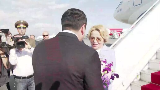 Кадры прибытия председателя СФ России Валентины Матвиенко в Армению – ее встречал Ален Симонян