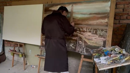 Ахмат Тауэр Грозный, масло/холст 100 на 150 см. Зилавди Яшуркаев.