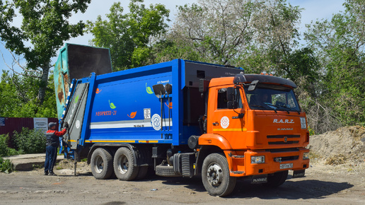 Мусоровоз МК-4546-08 на шасси КамАЗ-65115-50 (К 077 ВВ 122). Работа с порталом. / KAMAZ garbage truck.