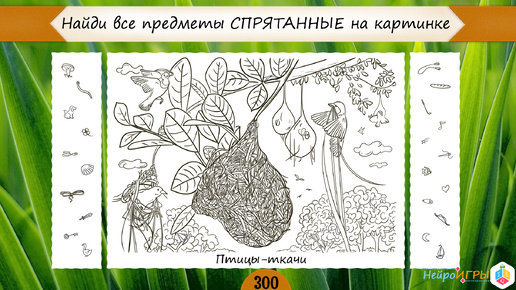 Головоломка " Птицы- ткачи" - найди на картинке спрятанные предметы