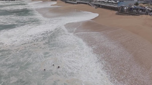 Гигантская волна смывает отдыхающих с пляжа