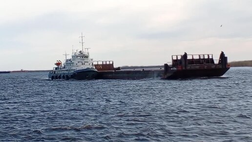 Теплоход ОТА - 980 идёт с Баржей по Реке Полуй ⚓