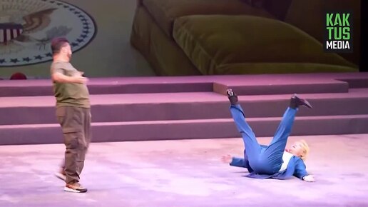 На сцене китайского театра в Гонконге разыграли комедийную версию ссоры между президентом США Дональдом Трампом и Владимиром Зеленским.