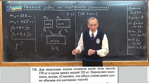 Задача на определение плотности латуни сплавленной из меди и цинка.