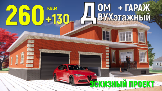 КРАСИВЫЙ КИРПИЧНЫЙ ДВУХЭТАЖНЫЙ ДОМ 260 кв.м. + ГАРАЖ. 16х20м. ЭСКИЗНЫЙ ПРОЕКТ. HOUSE DESIGN