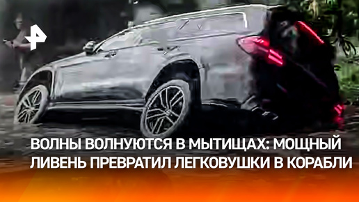 Асфальт тронулся: авто провалилось в яму после ливня в подмосковных Мытищах