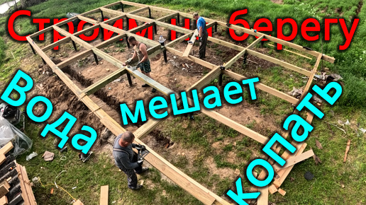 Обвязка дома на берегу. Привезли очистную станцию, но высокие грунтовые воды помешали вкопать.