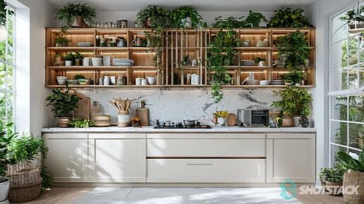 🌿 Кухня с зеленью и светом — уют и стиль в одном пространстве! 💡✨
