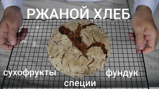 Ржаной подовый хлеб с сухофруктами, фундуком и специями.