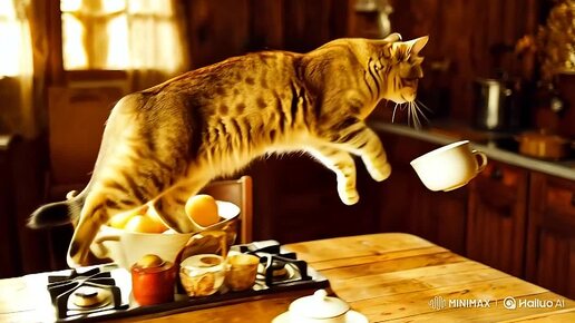 Шутки от нейросети: кот спрыгивает со стола