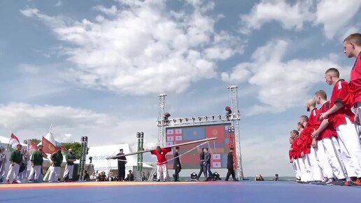 Дмитрий Халаджи , показательное выступление - сгибание двутавровой металлической шестиметровой балки