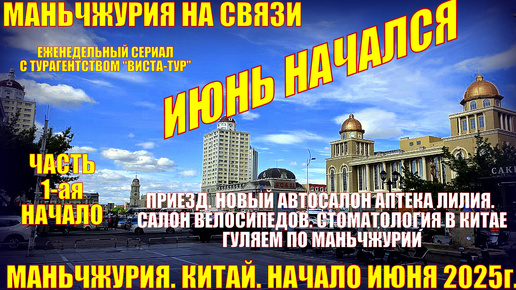 Маньчжурия. Китай. Июнь 2025. Часть 1. Приезд. Новый автосалон, Аптека "Лиля". Велосипеды. Лавки, рестораны.