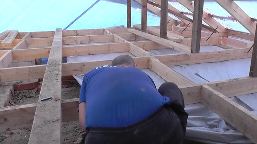 Один растягиваю плёнку 2 часть. Строительство пристройки к дому 58 серия