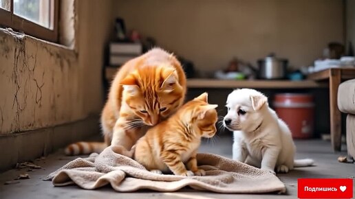 Котик и щенок