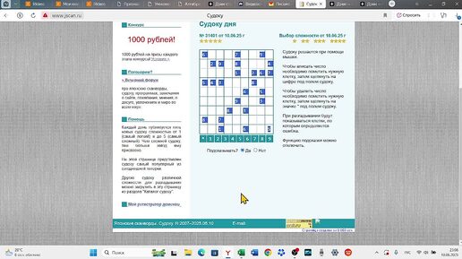 Судоку дня от 10.06.2025 (5*) из сайта jscan.ru