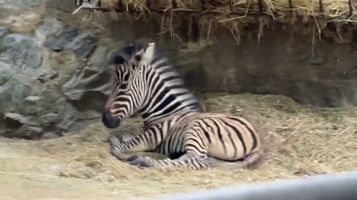 НОВОРОЖДЕННЫЙ зебренок спит на сеновале рядом с мамочкой!