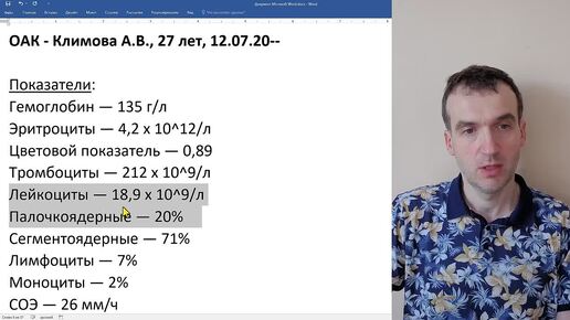 Общий анализ крови (ОАК) - лейкоцитоз со сдвигом влево. Консультация к экзамену.
