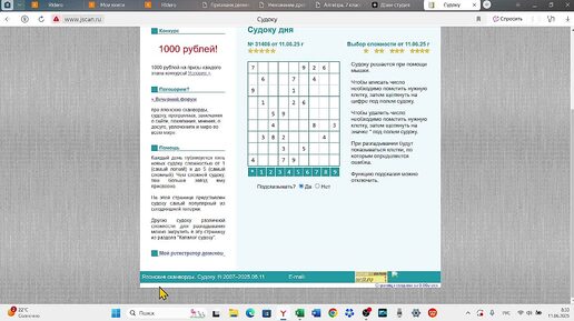 Судоку дня (5*) от 11.06.2025 из сайта jscan.ru