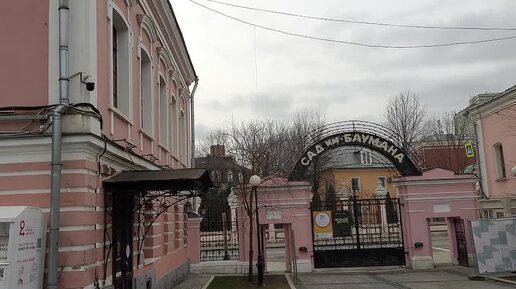 У "Путевого дворца, усадьбы Голицыных и церкви" возле выхода из сада Баумана в Москве