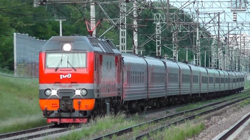 Вечерний пассажирский поезд с электровозом ЭП2К-380 и встречная ЭС1П-044 "Ласточка".