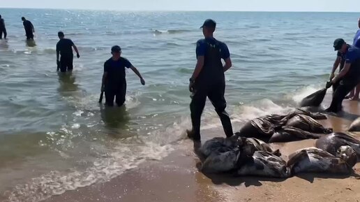 Вот так108 мешков мазута подняли со дна моря в Анапе 9 июня | ЮФО