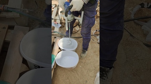 Затворяем Декоративную Штукатурку Спадар водой, перемешиваем миксером, готовим к нанесению на фасад