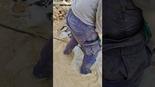 Смачиваем водой газобетонную кладку стен дома перед нанесением минеральных декоративных штукатурок